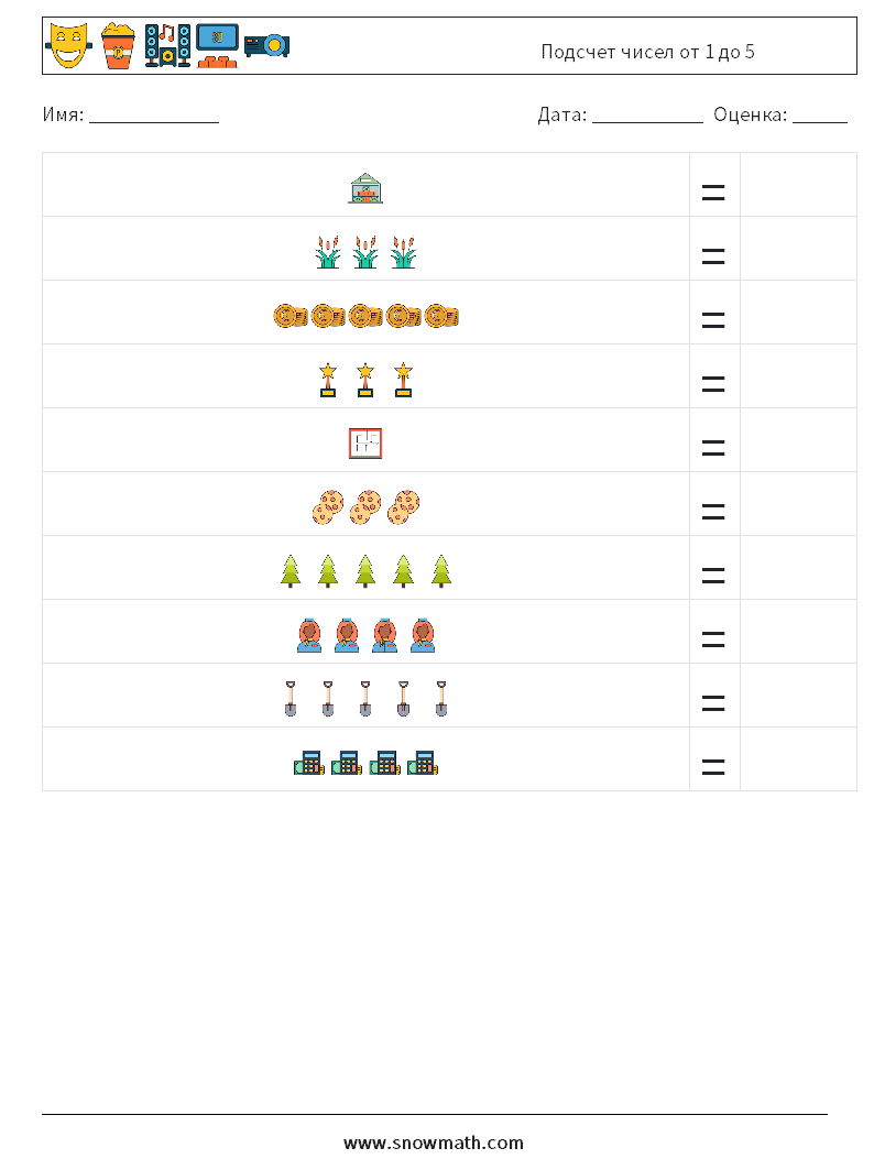 Подсчет чисел от 1 до 5 Рабочие листы по математике 5