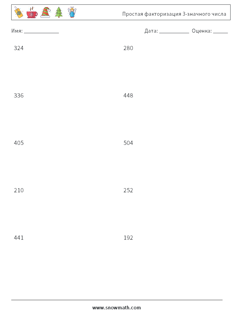 Простая факторизация 3-значного числа Рабочие листы по математике 8