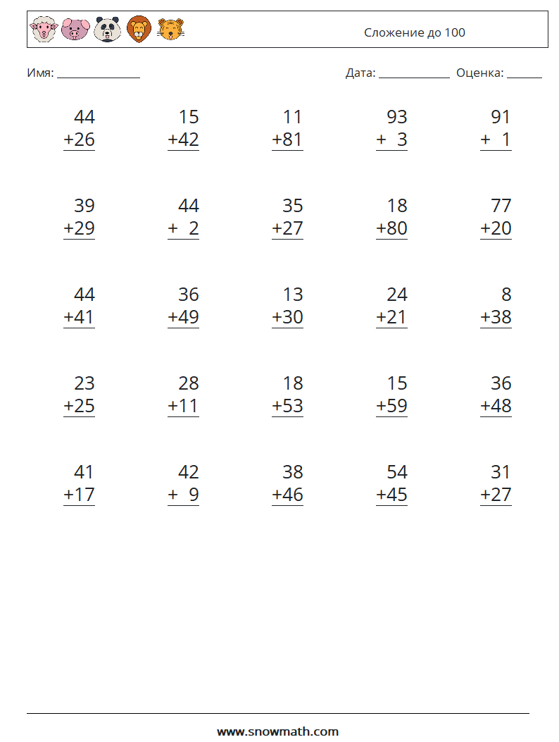 (25) Сложение до 100