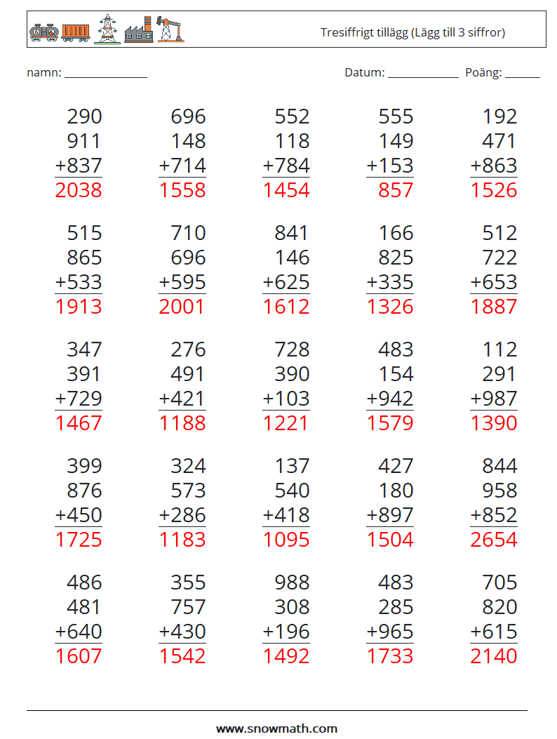 (25) Tresiffrigt tillägg (Lägg till 3 siffror)