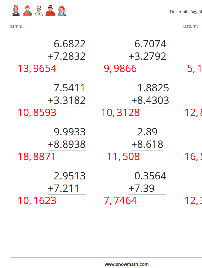 (12) Decimaltillägg (4 siffror)