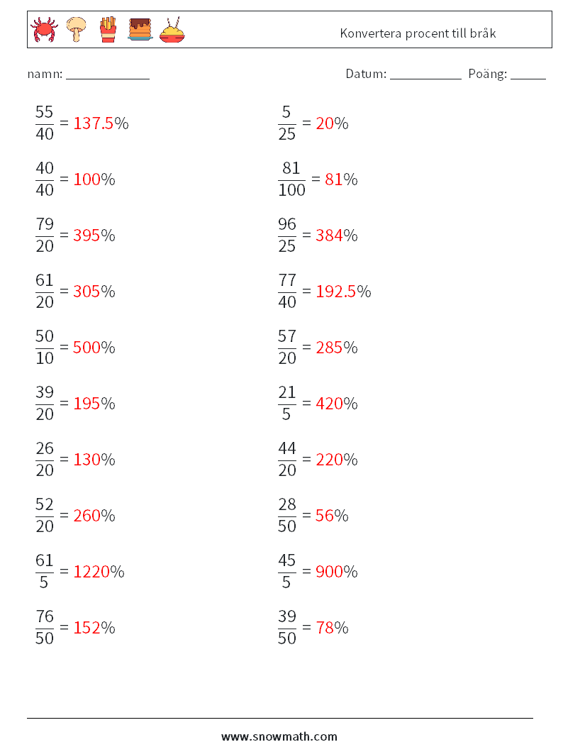 Konvertera procent till bråk