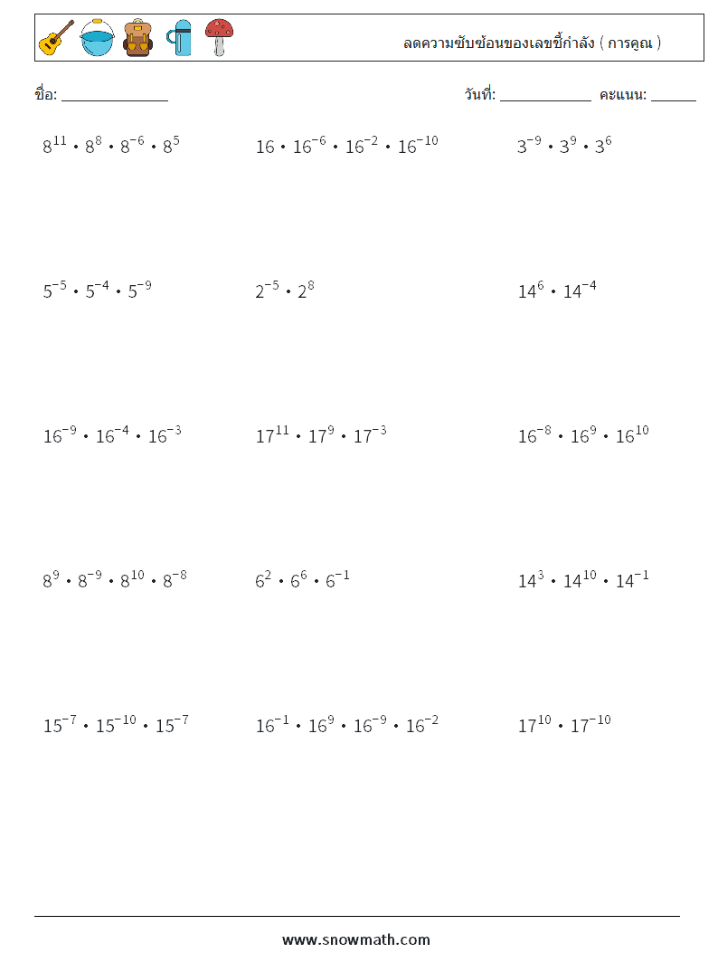 ลดความซับซ้อนของเลขชี้กำลัง ( การคูณ )