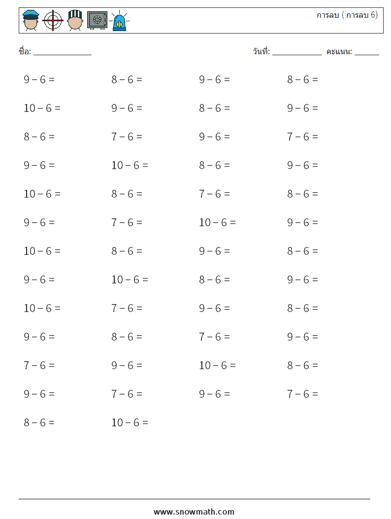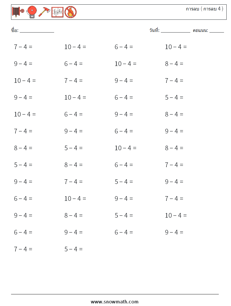 (50) การลบ สูงสุด 10 ( แนวนอน )