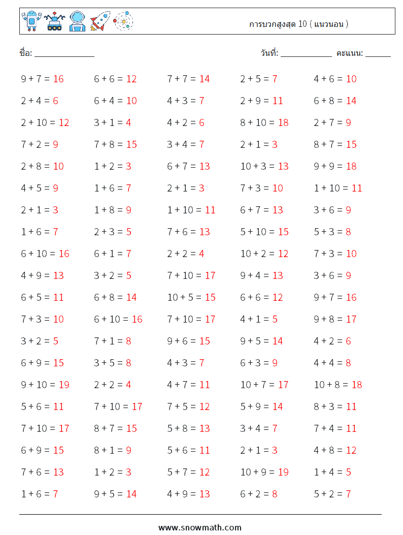 (100) การบวกสูงสุด 10 ( แนวนอน )