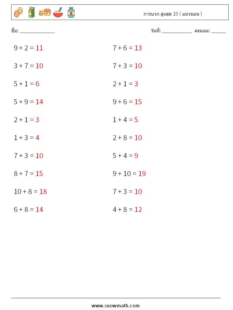 (20) การบวก สูงสุด 10 ( แนวนอน )