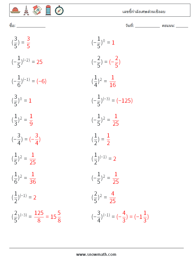 เลขชี้กำลังเศษส่วนเชิงลบ