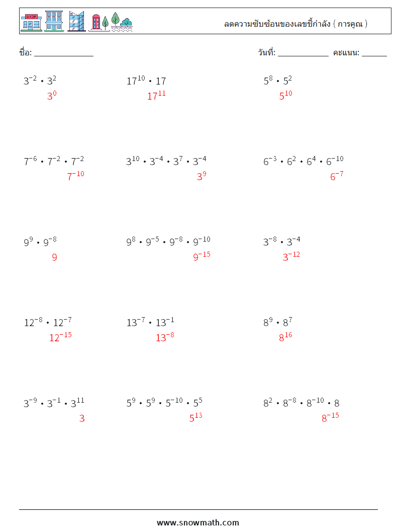 ลดความซับซ้อนของเลขชี้กำลัง ( การคูณ )