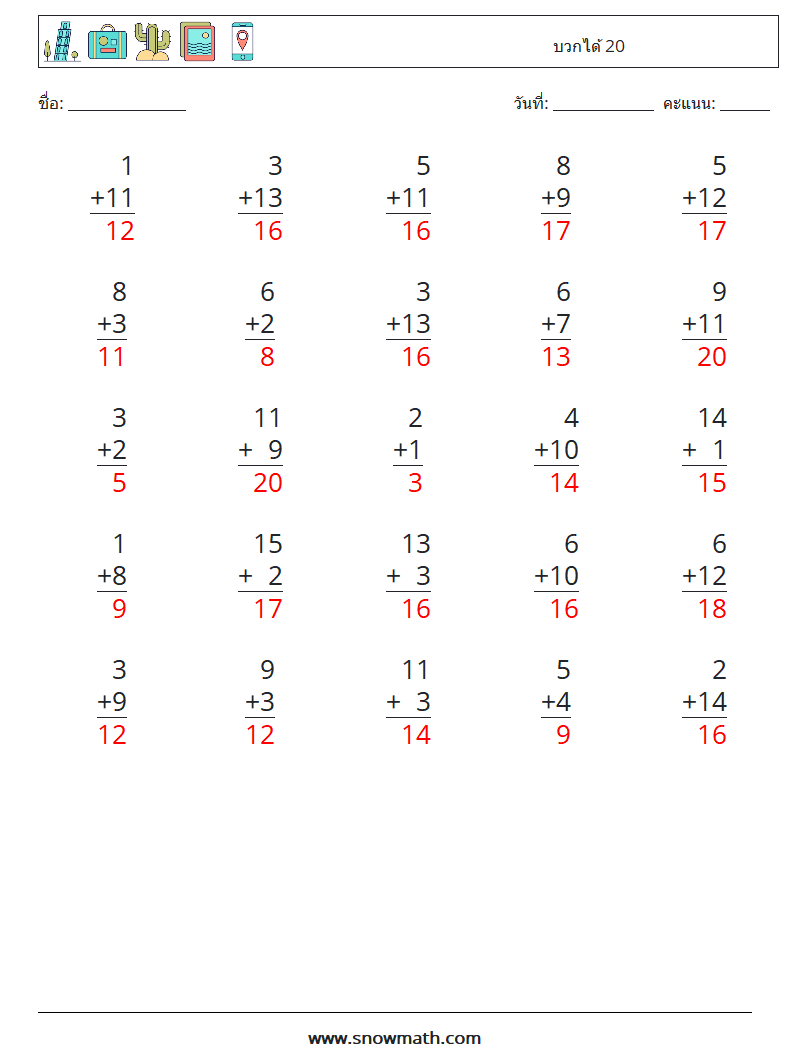 การบวกภายใน 20