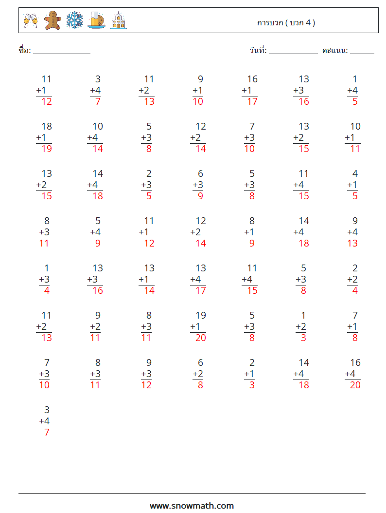 (50) การบวก ( บวก 4 )