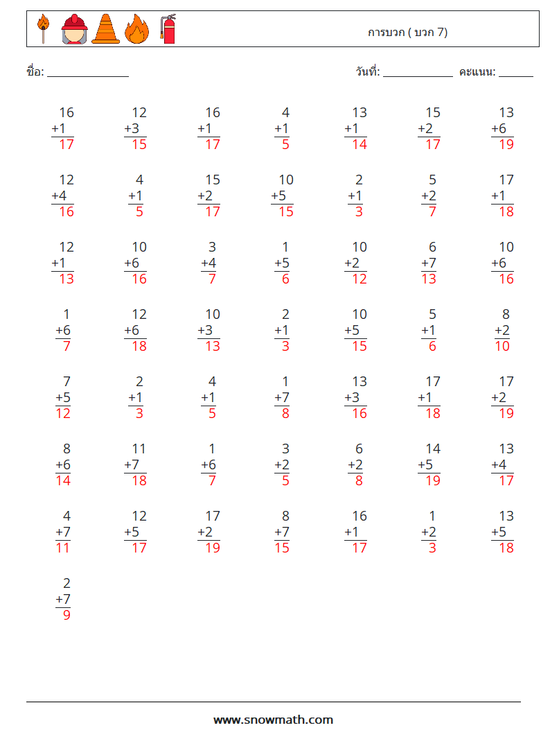 (50) การบวก ( บวก 7)