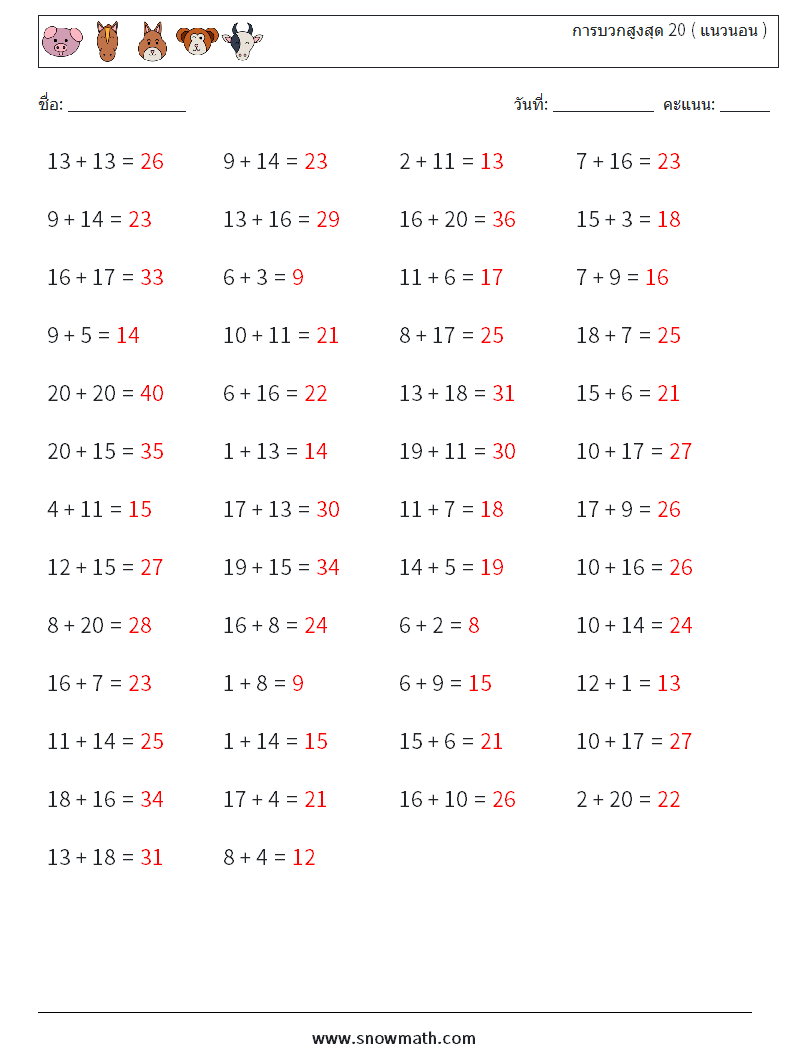 (50) การบวกสูงสุด 20 ( แนวนอน )
