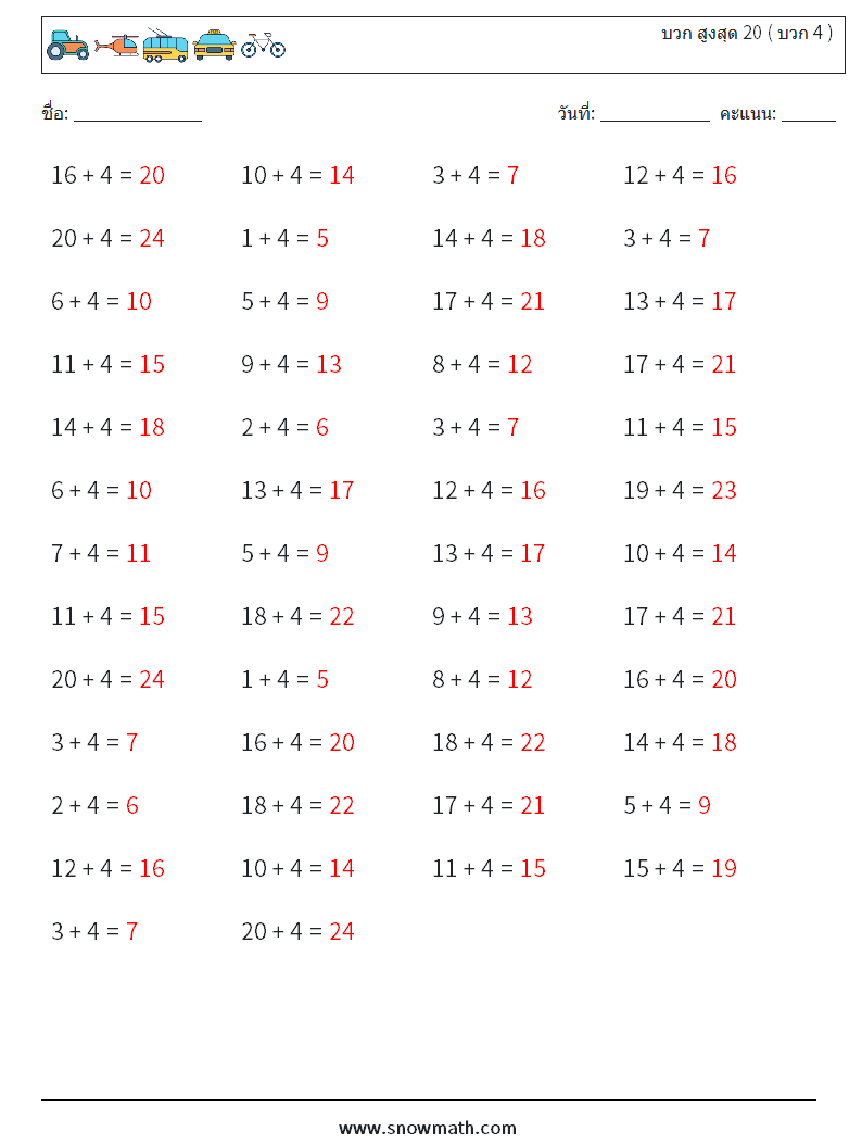 (50) บวก สูงสุด 20 ( บวก 4 )