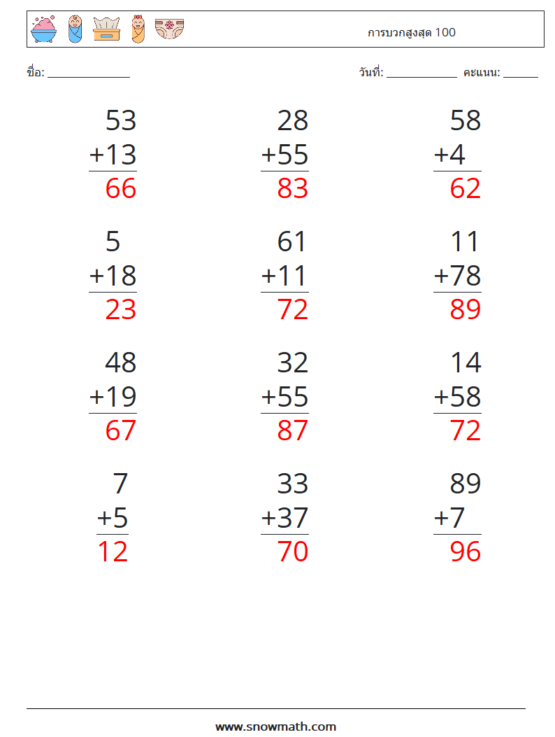 (12) การบวกสูงสุด 100
