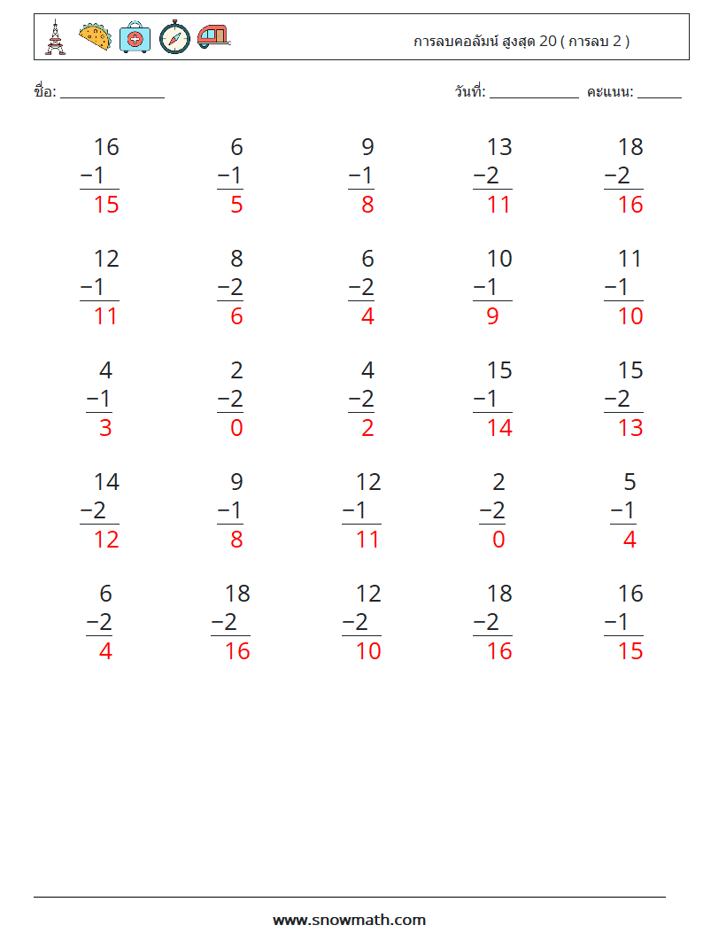 (25) การลบคอลัมน์ สูงสุด 20 ( การลบ 2 )