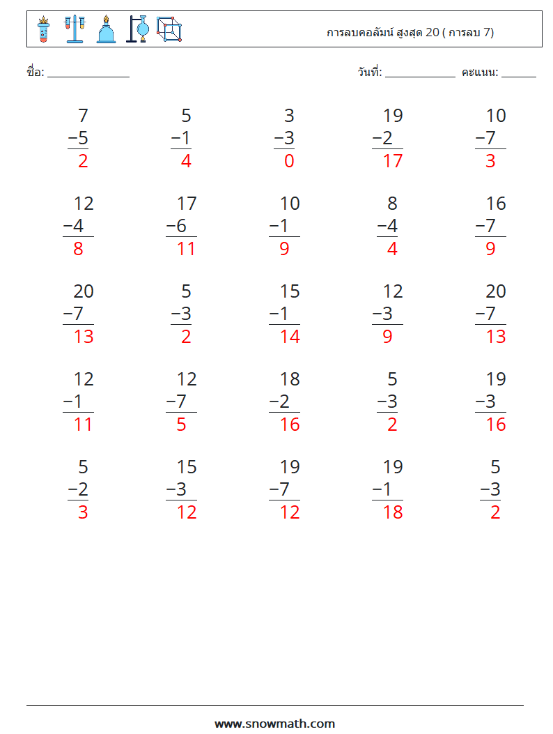 (25) การลบคอลัมน์ สูงสุด 20 ( การลบ 7)
