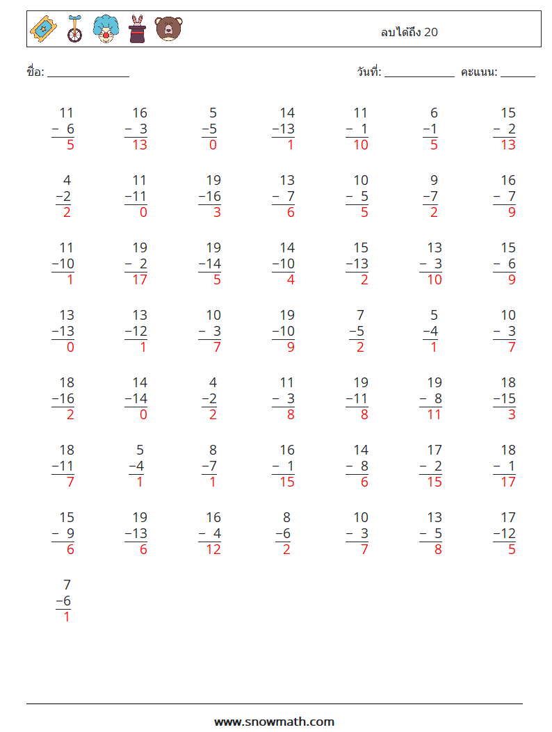 การลบภายใน 20