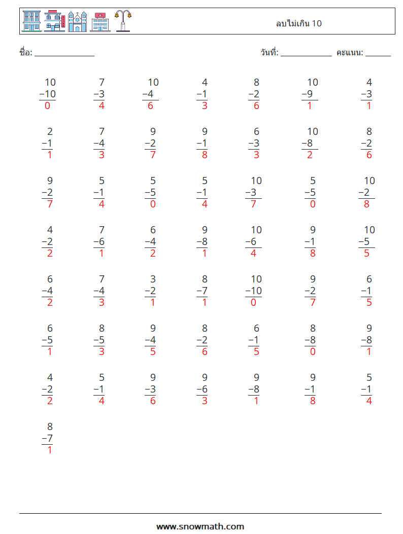 (50) ลบไม่เกิน 10