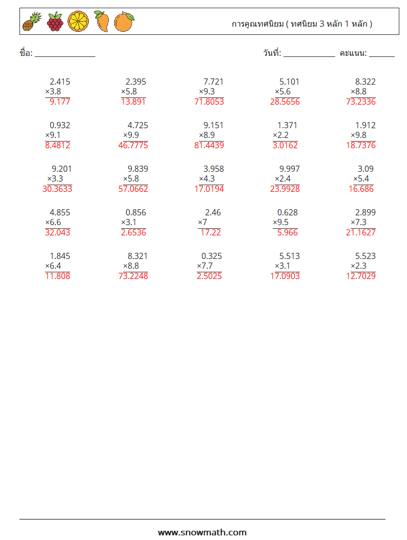 (25) การคูณทศนิยม ( ทศนิยม 3 หลัก 1 หลัก )