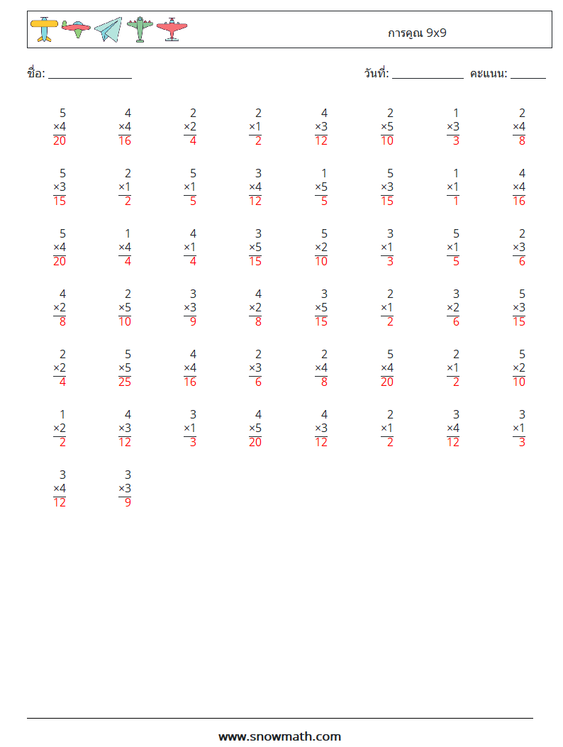 (50) การคูณ 9x9