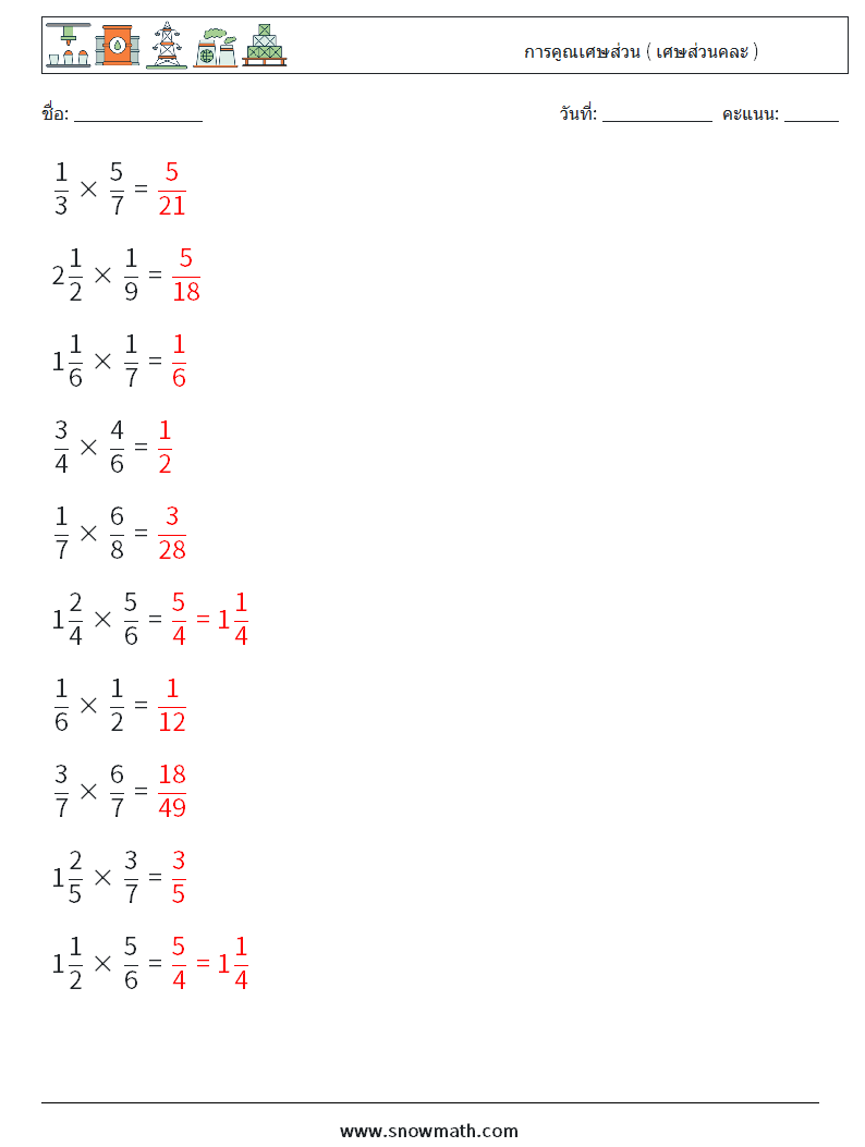 (10) การคูณเศษส่วน ( เศษส่วนคละ )