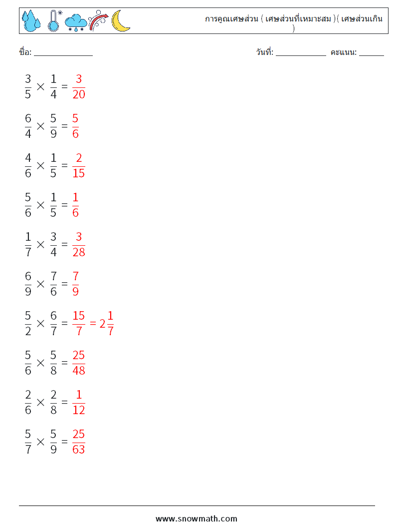 (10) การคูณเศษส่วน ( เศษส่วนที่เหมาะสม )( เศษส่วนเกิน )