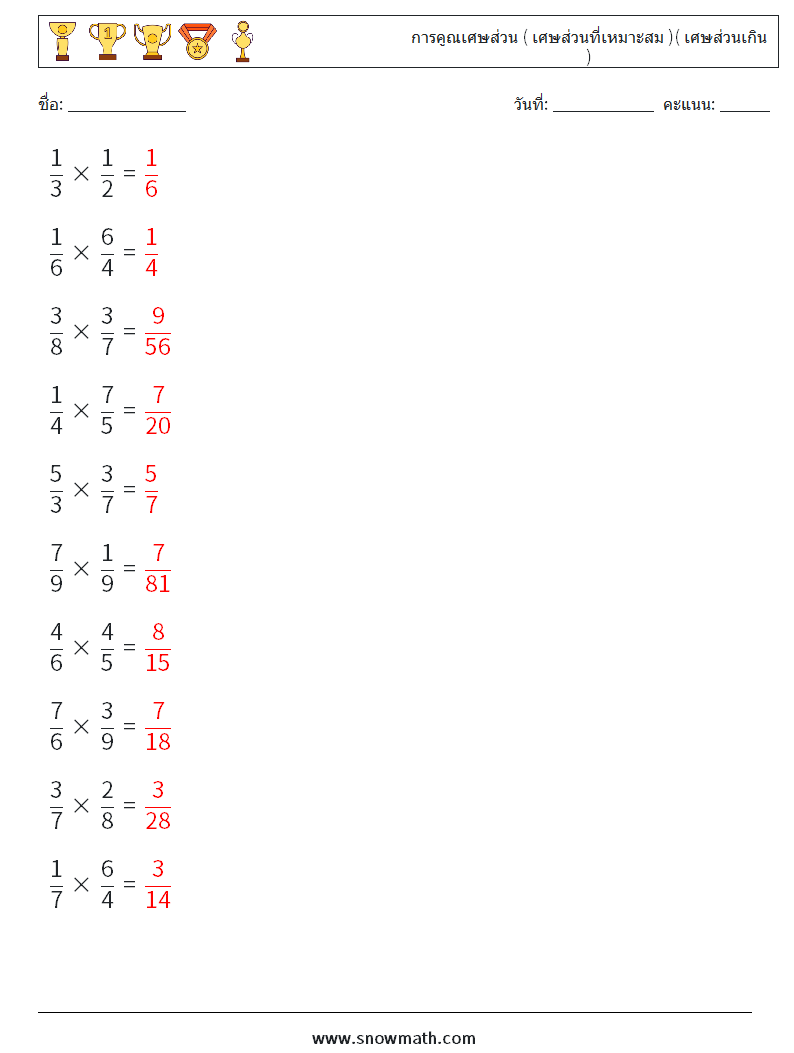 (10) การคูณเศษส่วน ( เศษส่วนที่เหมาะสม )( เศษส่วนเกิน )