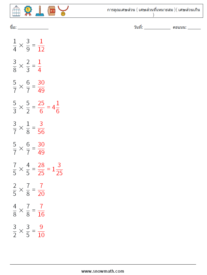 (10) การคูณเศษส่วน ( เศษส่วนที่เหมาะสม )( เศษส่วนเกิน )