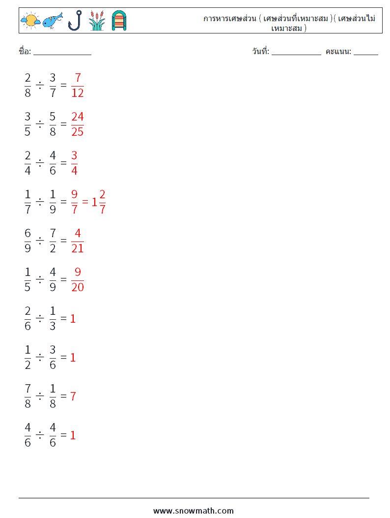 (10) การหารเศษส่วน ( เศษส่วนที่เหมาะสม )( เศษส่วนไม่เหมาะสม )
