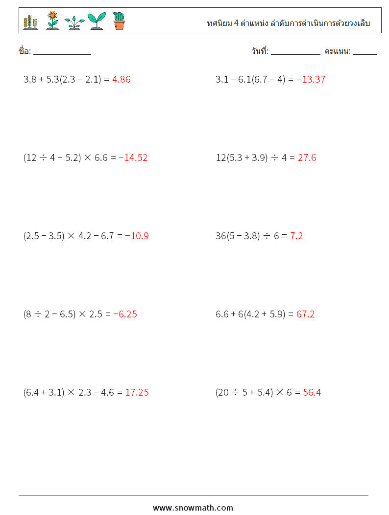 (10) ทศนิยม 4 ตำแหน่ง ลำดับการดำเนินการด้วยวงเล็บ