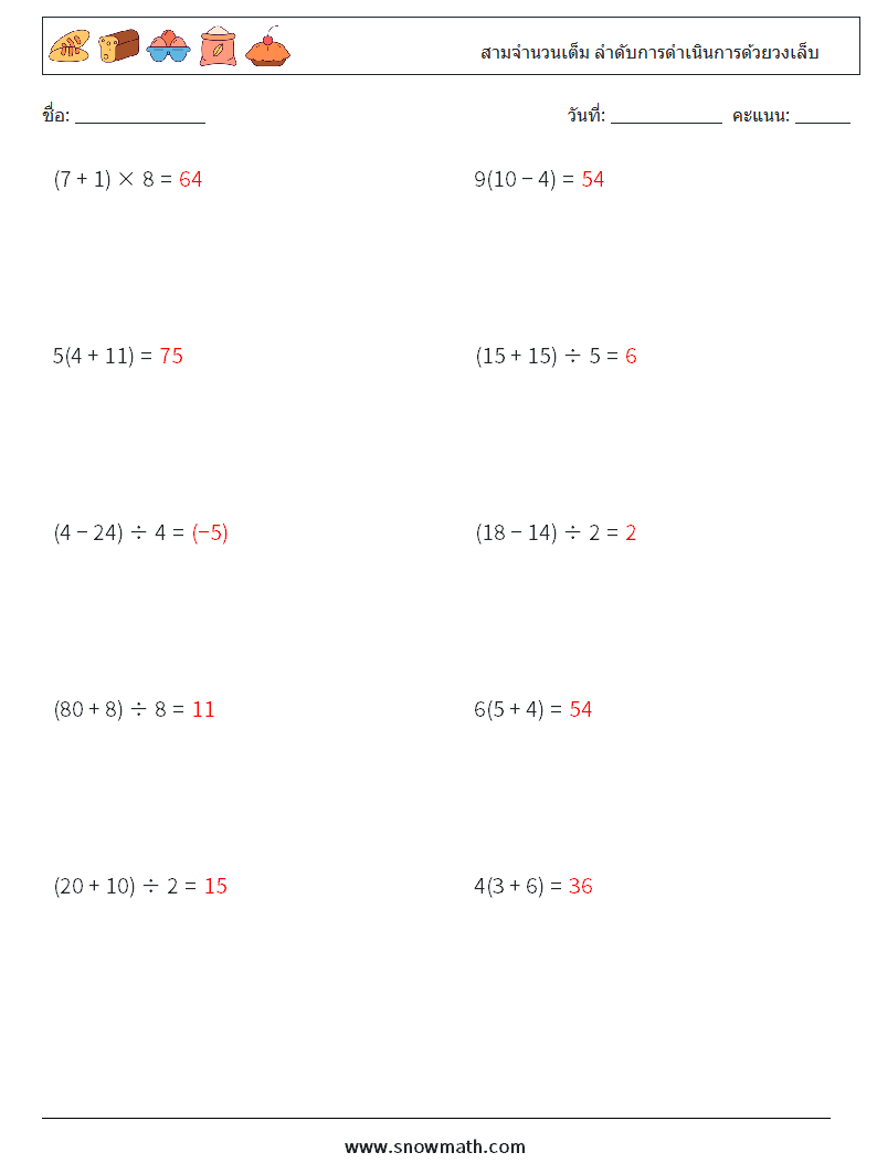(10) สามจำนวนเต็ม ลำดับการดำเนินการด้วยวงเล็บ