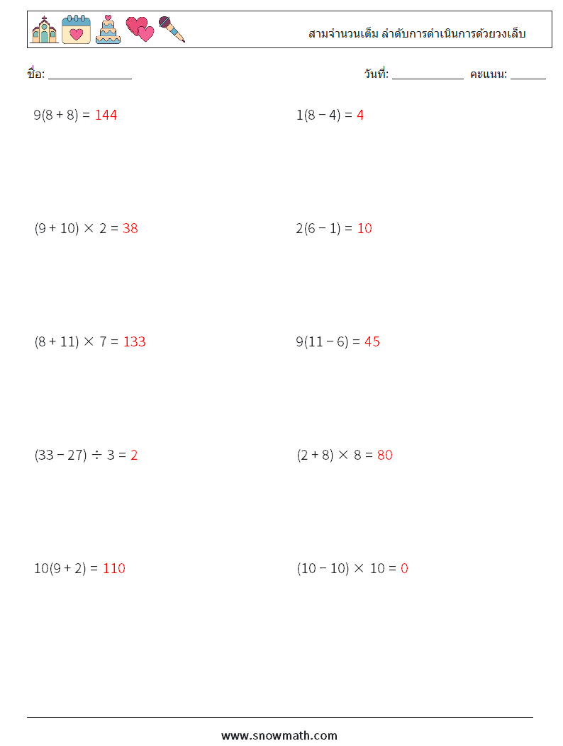 (10) สามจำนวนเต็ม ลำดับการดำเนินการด้วยวงเล็บ