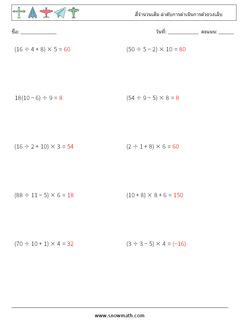 (10) สี่จำนวนเต็ม ลำดับการดำเนินการด้วยวงเล็บ