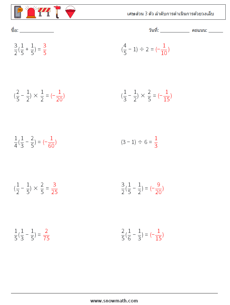 (10) เศษส่วน 3 ตัว ลำดับการดำเนินการด้วยวงเล็บ