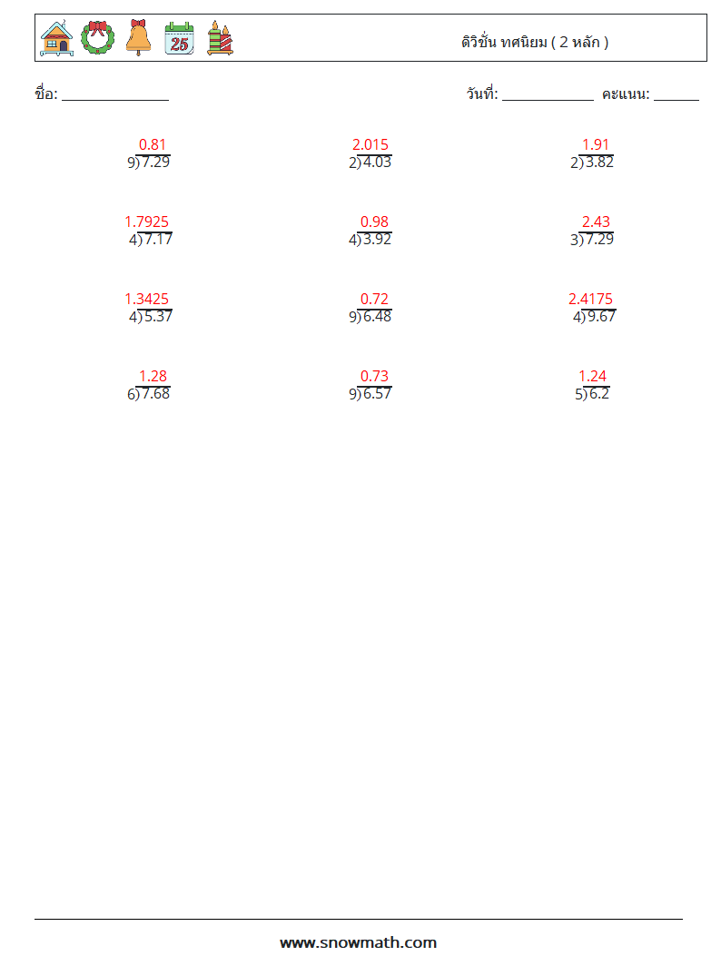 (12) ดิวิชั่น ทศนิยม ( 2 หลัก )