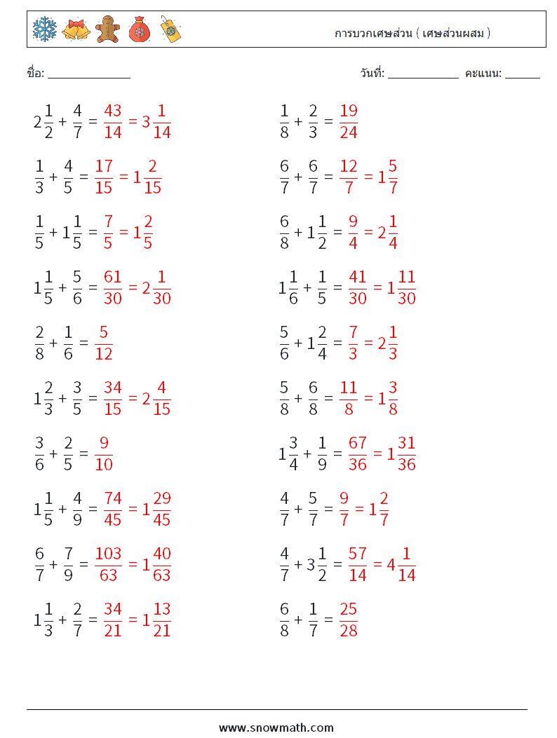 (20) การบวกเศษส่วน ( เศษส่วนผสม )
