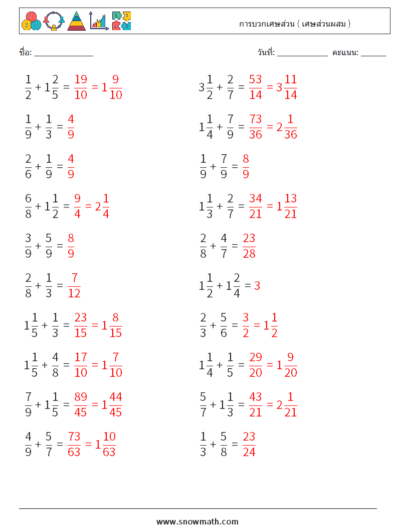 (20) การบวกเศษส่วน ( เศษส่วนผสม )