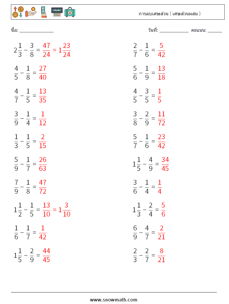 (20) การลบเศษส่วน ( เศษส่วนผสม )