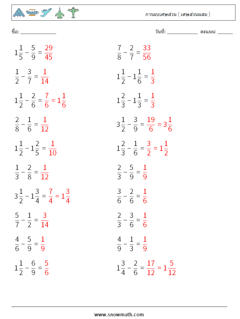(20) การลบเศษส่วน ( เศษส่วนผสม )