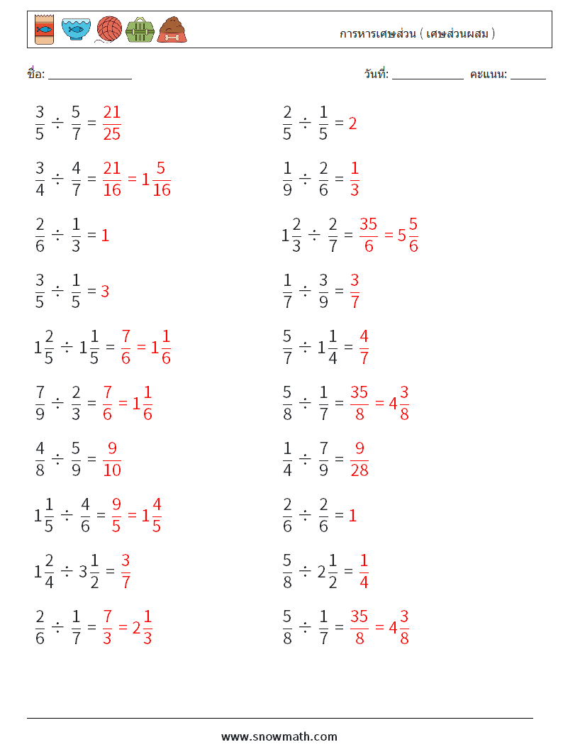 (20) การหารเศษส่วน ( เศษส่วนผสม )