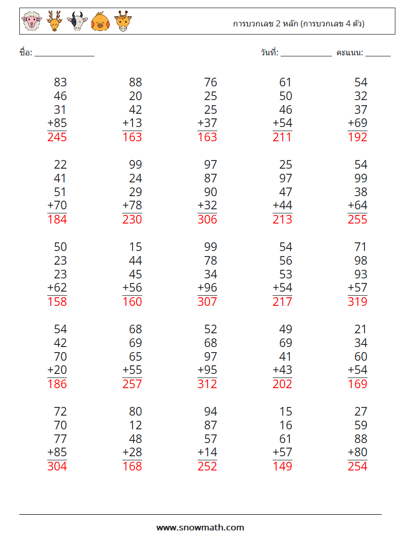 (25) การบวกเลข 2 หลัก (การบวกเลข 4 ตัว)