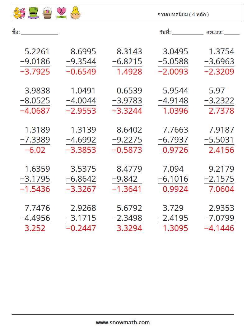 (25) การลบทศนิยม ( 4 หลัก )