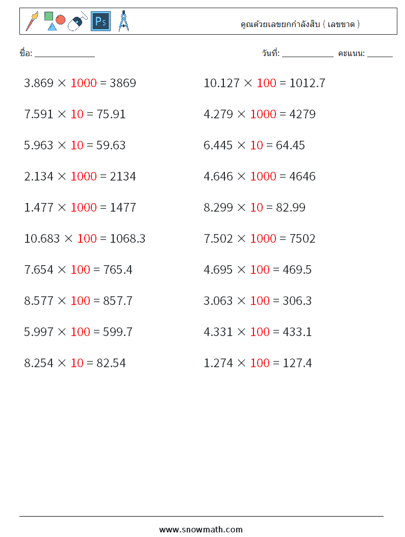 คูณด้วยเลขยกกำลังสิบ ( เลขขาด )