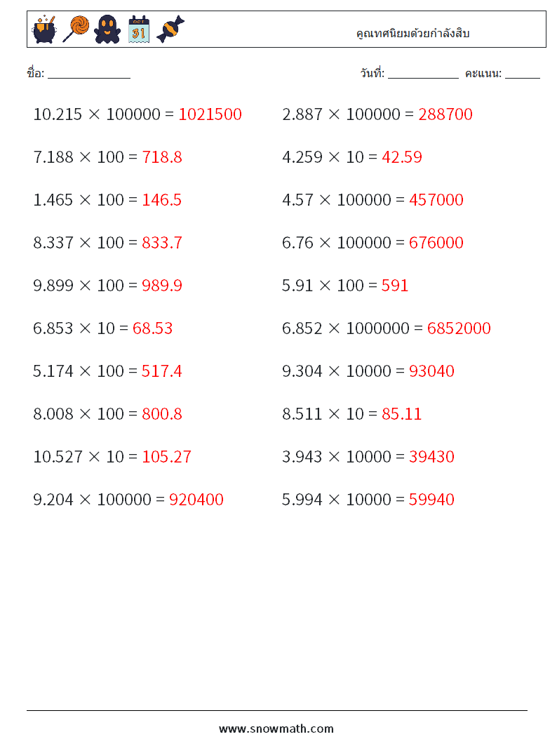 คูณทศนิยมด้วยกำลังสิบ