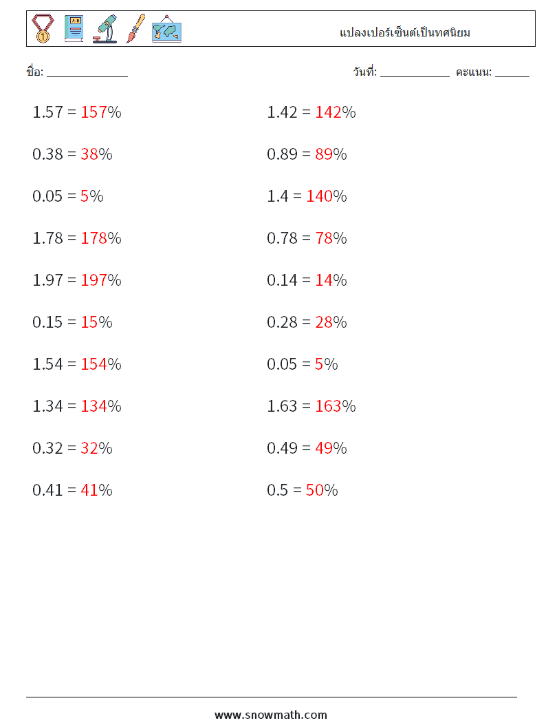 แปลงเปอร์เซ็นต์เป็นทศนิยม