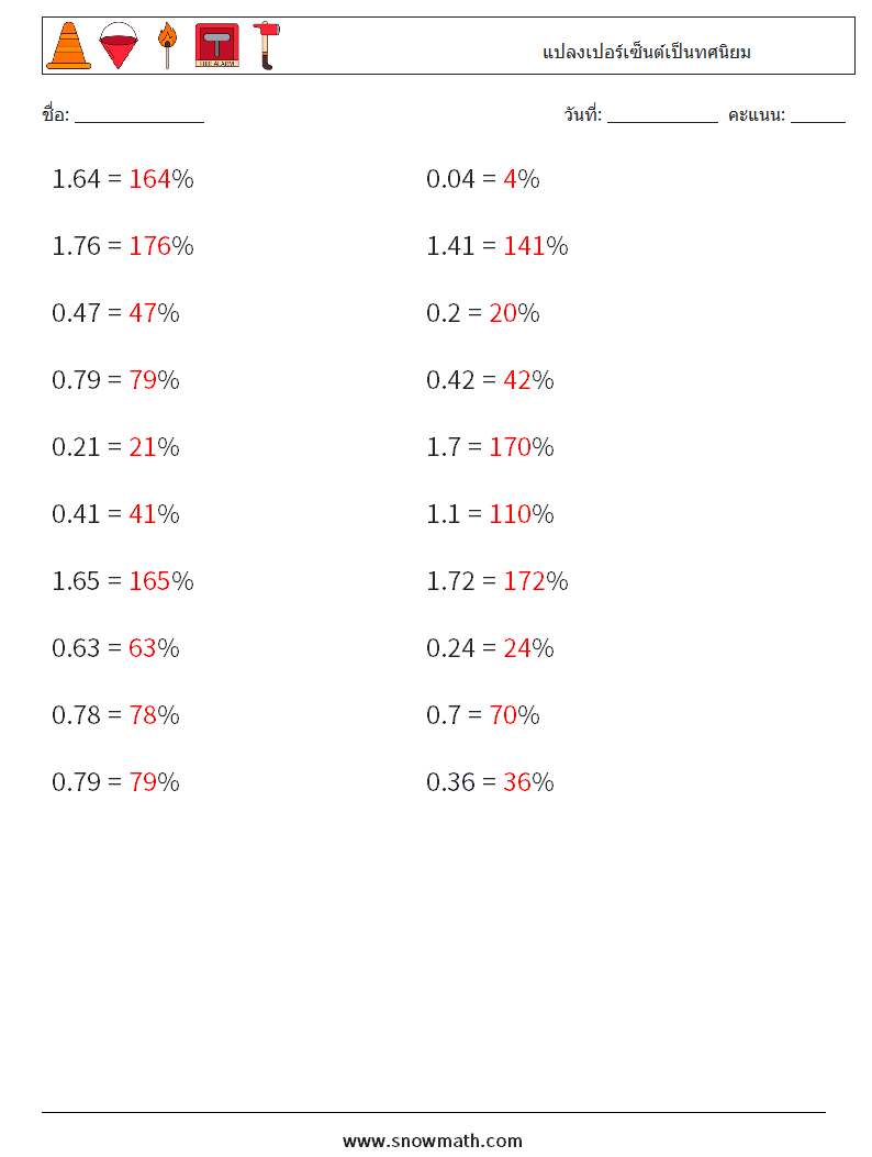 แปลงเปอร์เซ็นต์เป็นทศนิยม