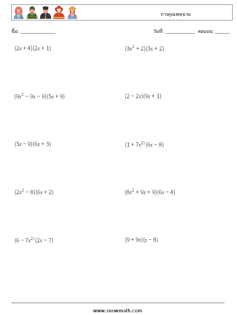 การคูณพหุนาม, คณิตศาสตร์ระดับมัธยมปลาย, แผ่นงานคณิตศาสตร์ฟรี