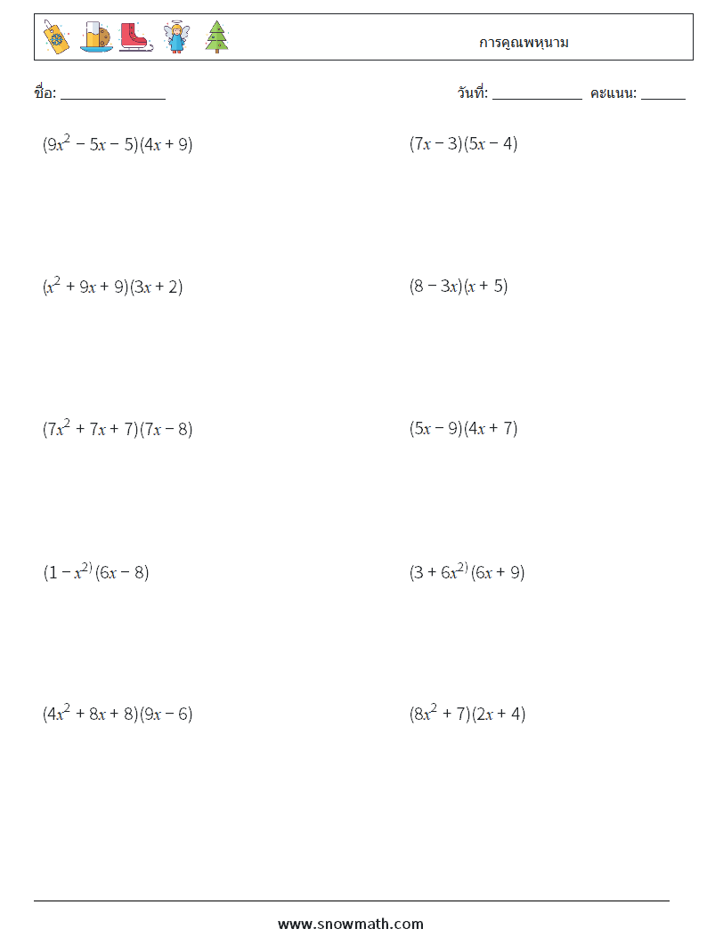การคูณพหุนาม ใบงานคณิตศาสตร์ 5