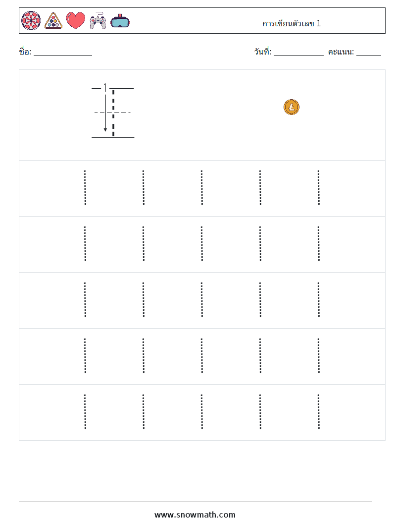 การเขียนตัวเลข 1 ใบงานคณิตศาสตร์ 5