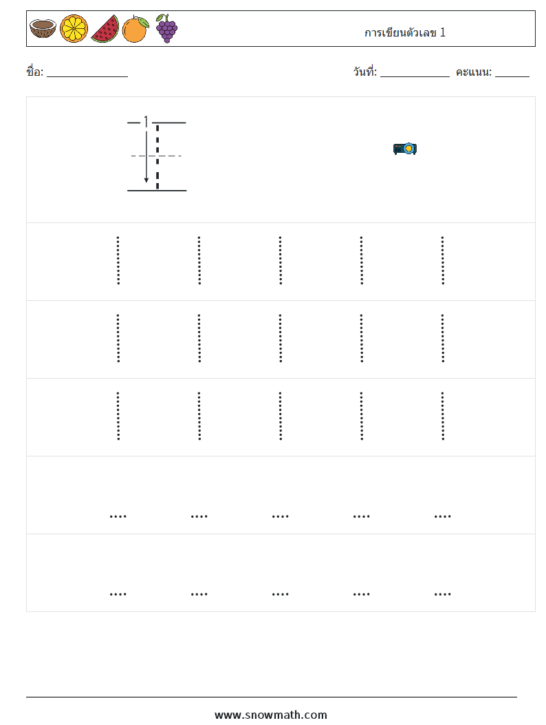 การเขียนตัวเลข 1 ใบงานคณิตศาสตร์ 12